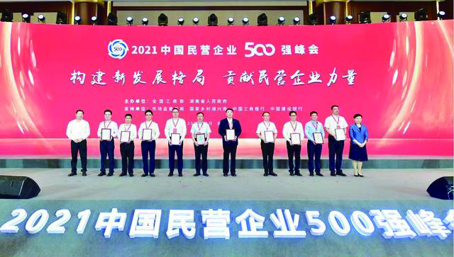 9月25日,2021中国民营企业500强峰会在长沙举行。全国政协副主席、全国工商联主席高云龙,工业和信息化部副部长徐晓兰,国家乡村振兴局党组成员、副局长洪天云,中国工商银行党委委员、副行长张伟武,中国建设银行党委委员、副行长王浩分别致辞。中央统战部副部长、全国工商联党组书记、常务副主席徐乐江出席会议。全国工商联党组副书记、副主席樊友山主持峰会,并发布“2021中国民营企业500强”“2021中国制造业民营企业500强”“2021中国服务业民营企业100强”榜单。全国工商联副主席黄荣发布《2021中国民营企业500强调研分析报告》,集团公司连续十三年荣登“中国民营企业500强”排行榜。
